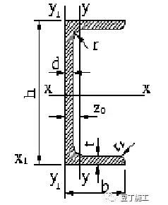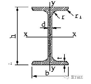 h:高度,d:腹板厚,b:翼緣板寬,t:翼緣板厚,r:內圓角半徑, q:邊端圓角半徑